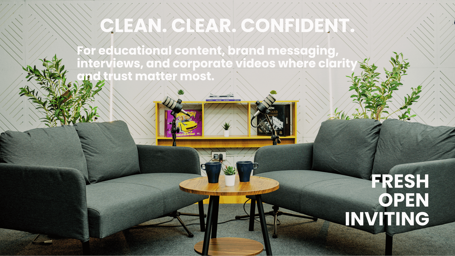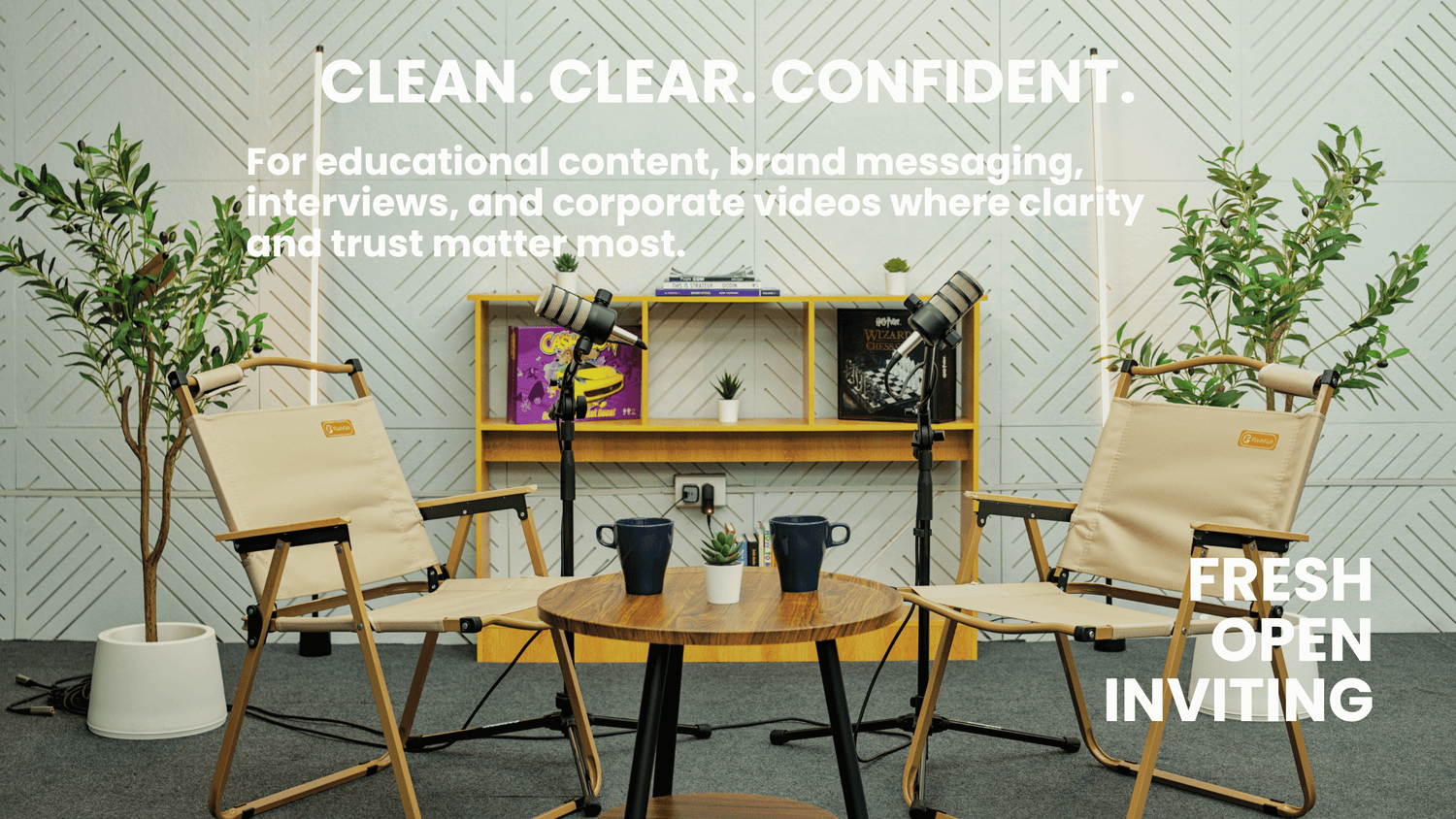 Our studio is equipped with professional lighting, camera, and audio equipment so you don't only look great but also sound great.